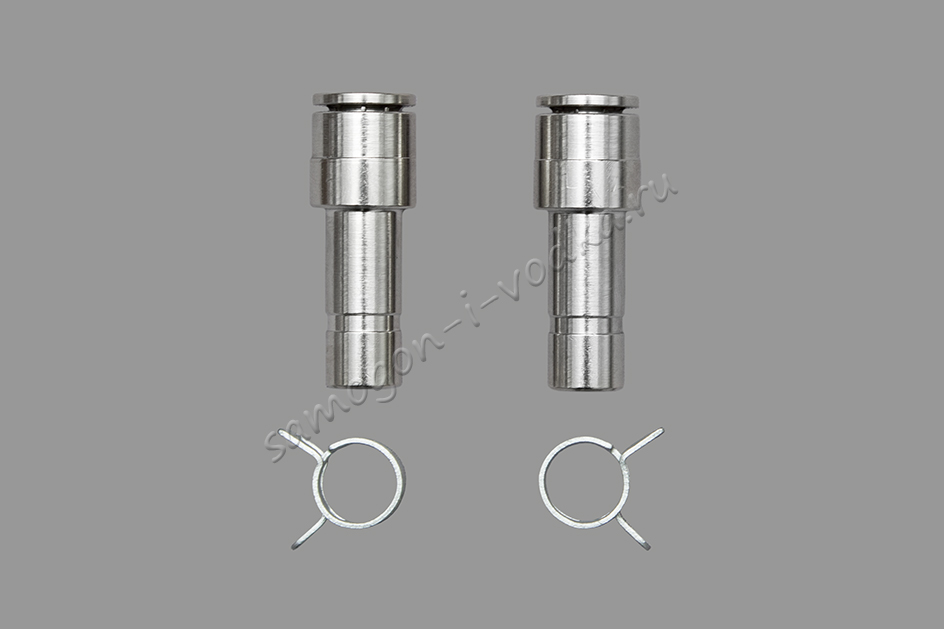 В комплект входят 2 разъема и 2 хомута, фиксирующих шланг на самой цанге быстросъема. При желании хомут может быть заменен на любой аналогичный (к примеру : винтовой хомут)